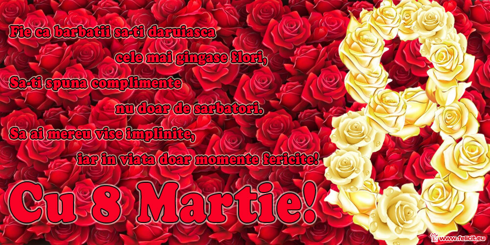 Felicitări de 8 martie. De Ziua Femeii, exprimă-ți dragostea pentru femeia iubită cu o felicitare caracteristică acestei zile.