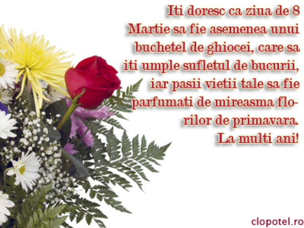 Iată câteva exemple de felicitări de Ziua Mamei pentru mamă, soră, bunică, soție, soacră, colegă sau profesoară. Cele mai frumoase felicitări de 8 martie pentru toate femeile. Felicitări cu mesaje de 8 martie.