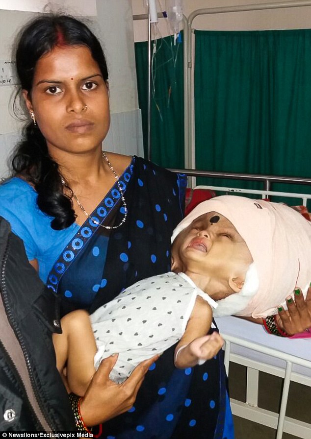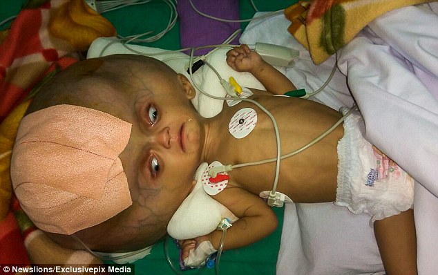 Un băiețel din India a fost tratat pentru a i se corecta o afecțiune craniană extrem de rară. Copilul suferă de hidrocefalie, iar acumularea de lichid din creier a făcut ca la doar șapte luni, craniul băiatului să măsoare 96 de centimetri.