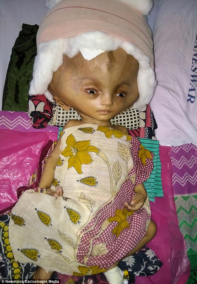 Medicii au reuși să extragă din craniul micuțului, Mrityungay Das, 3,7 litri de lichid cefalorahidian. Astfel capul bebelușului a fost redus cu 26 de centimetrii, de la 96 de centimetrii, la „doar” 70 de centimetrii, după o lună și jumătate de tratament.