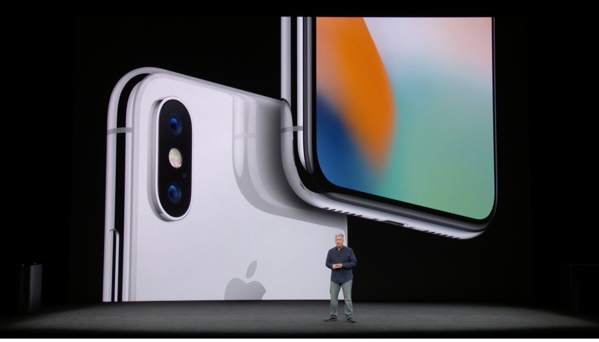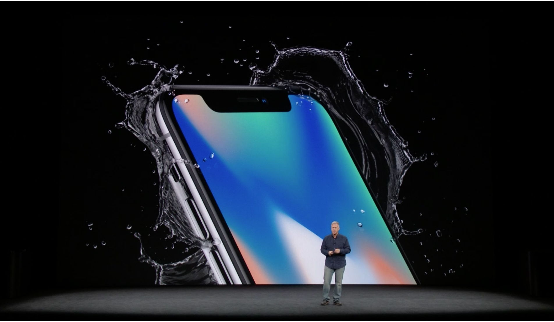 Phil Schiller a venit pe scenă. Primul telefon despre care vorbește e iPhone 8. Arată ca un iPhone 7 puțin ajustat, dar Apple susține că designul a fost regândit de la zero. Da, așa se întâmplă mereu.