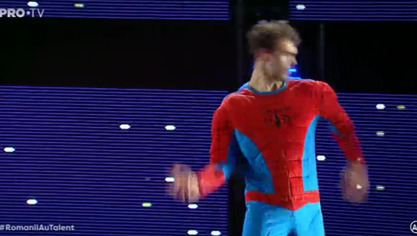 ora 20:59 – Daniel Marica are 25 de ani și este actor. Astăzi la interpretat pe Spiderman la Românii au talent cu niste acrobații de te lasă fară suflate.