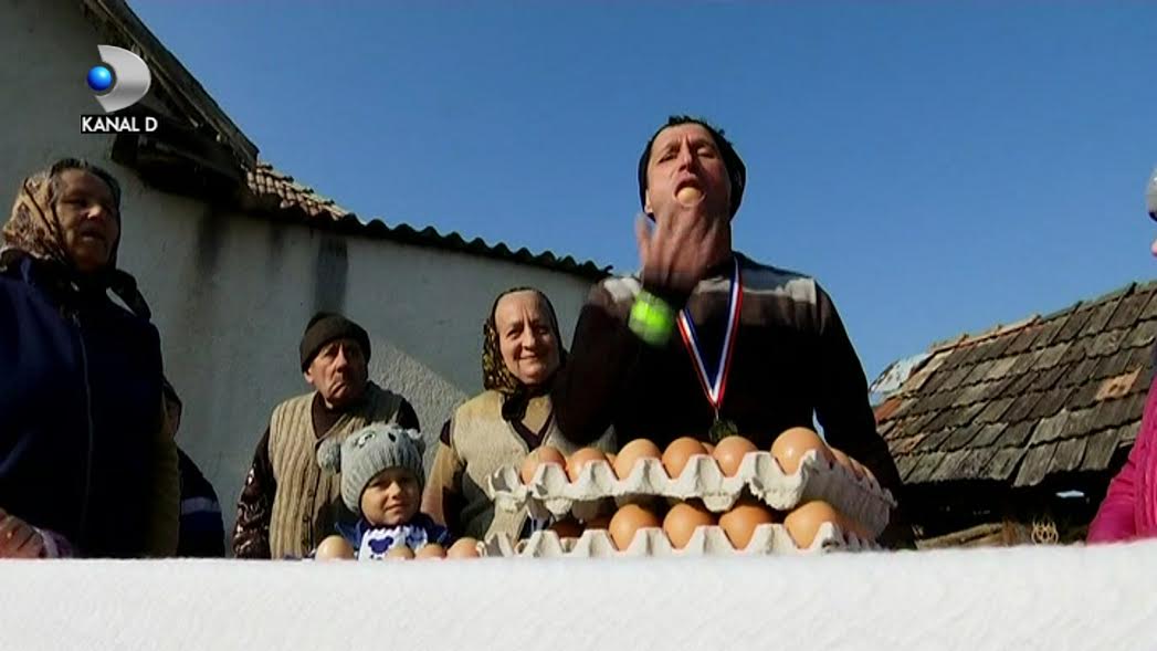 Un barbat dintr-o comuna din Salaj alearga kilometri intregi cu spatele si inghite oua crude cu coaja cu tot!
